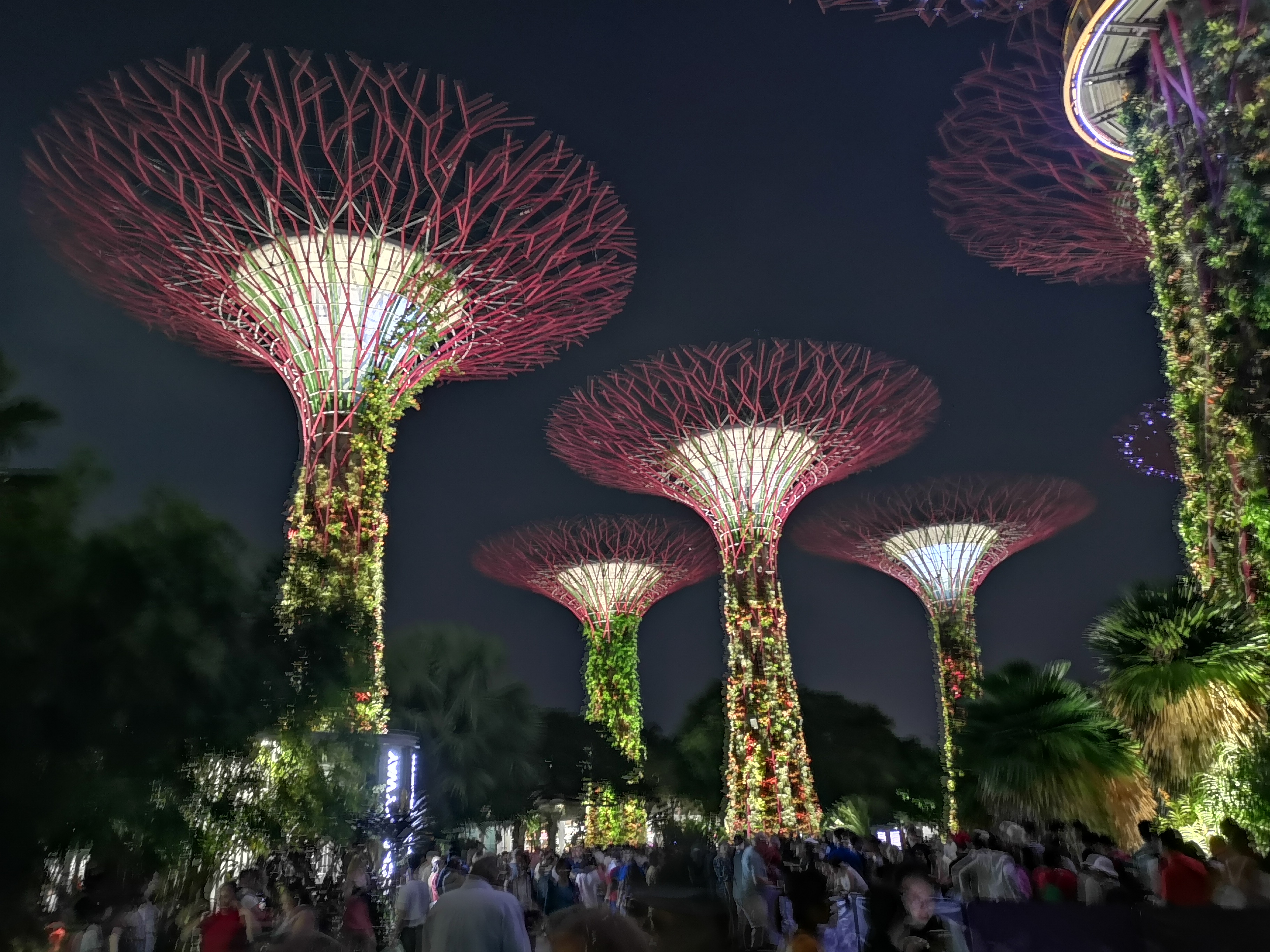 Wieder unten angekommen sind wir rüber zu den Gardens by the Bay, haben uns ein schönes Plätzchen gesucht und von dort aus die Lichter-Show bewundert, die jeden Abend stattfindet.