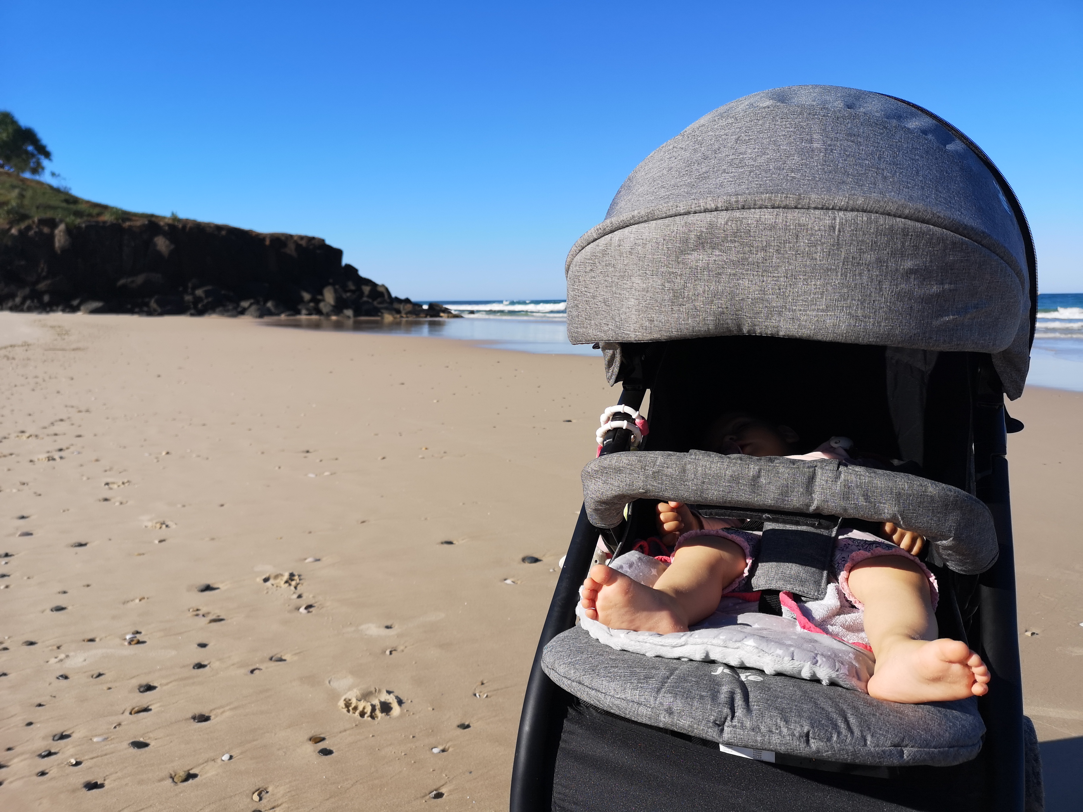 Wie fast jede Nacht bin ich gegen fünf Uhr wach geworden, aber heute durfte ich nicht in meinem Bett weiter schlafen, sondern im Buggy… Mama und Papa sind mit mir los, um den Sonnenaufgang zu sehen. Dafür sind wir zum Leuchtturm in Byron Bay gefahren. Und passend bin ich auch wieder wach geworden und konnte mir alles ansehen.