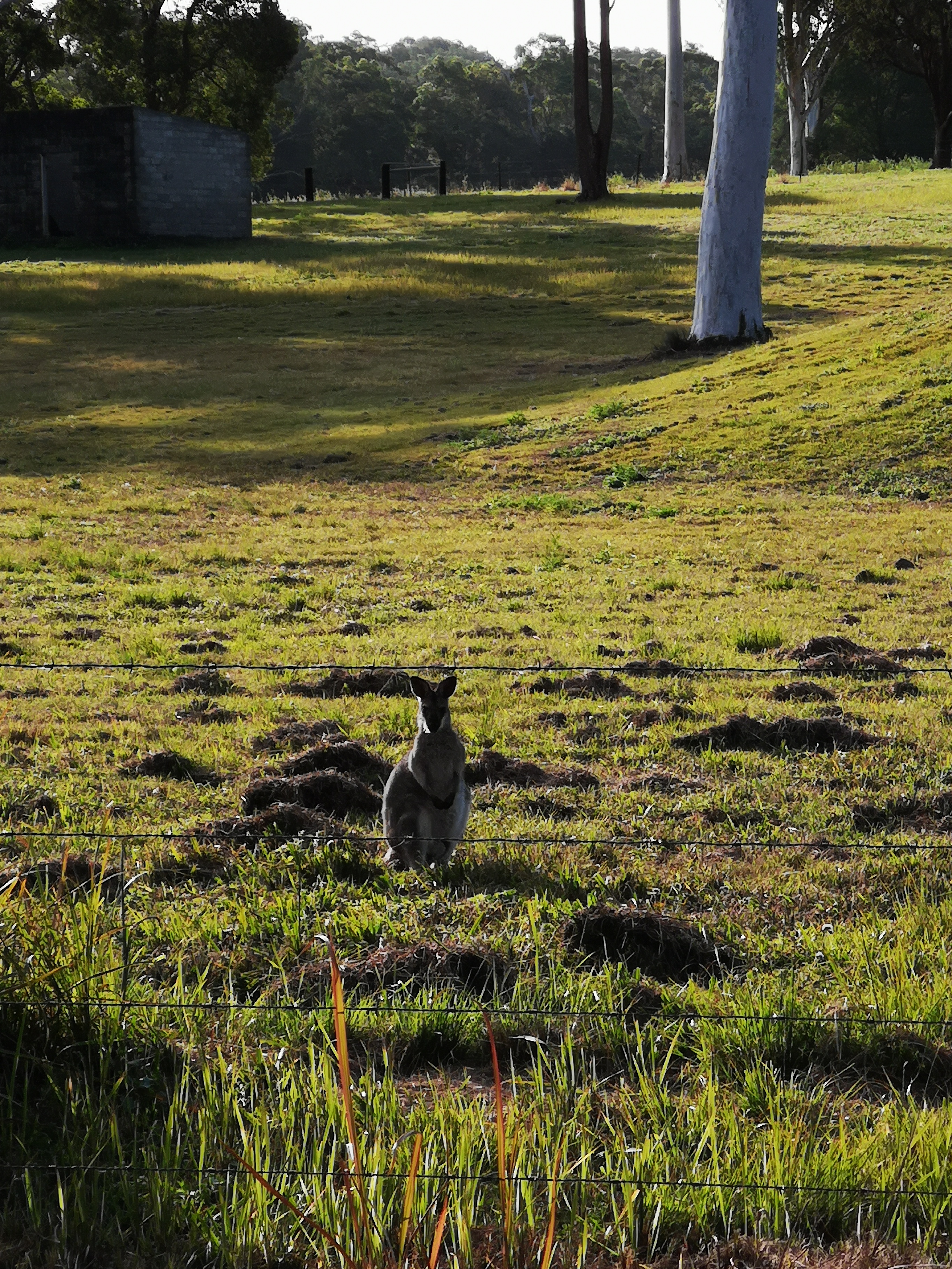 Nachdem ich mich in dem großen Haus austoben durfte, sind wir über Wiesen und Felder zur Sirromet Winery gelaufen. Auf dem Weg dorthin konnten wir viele Wallabys beobachten.