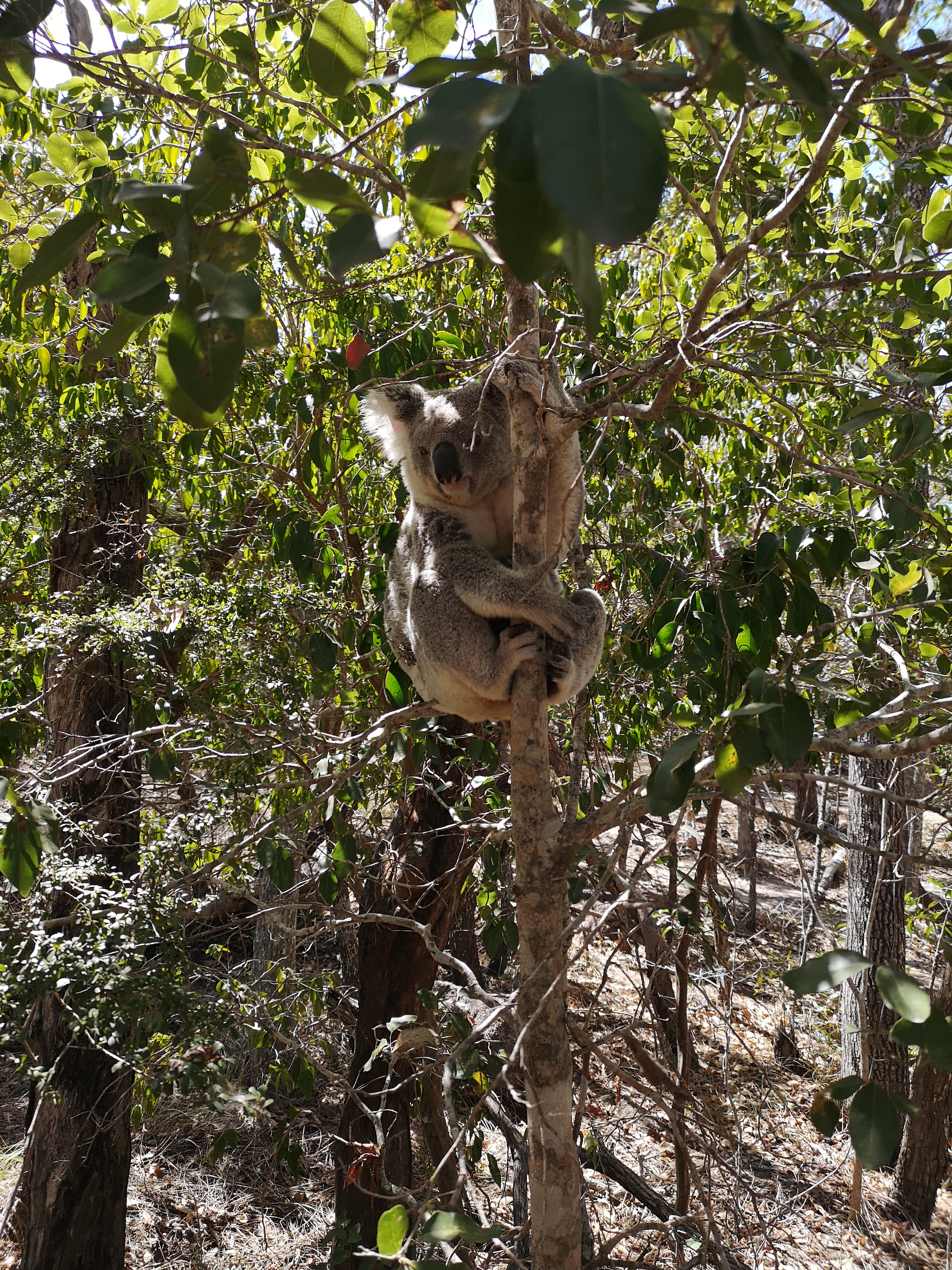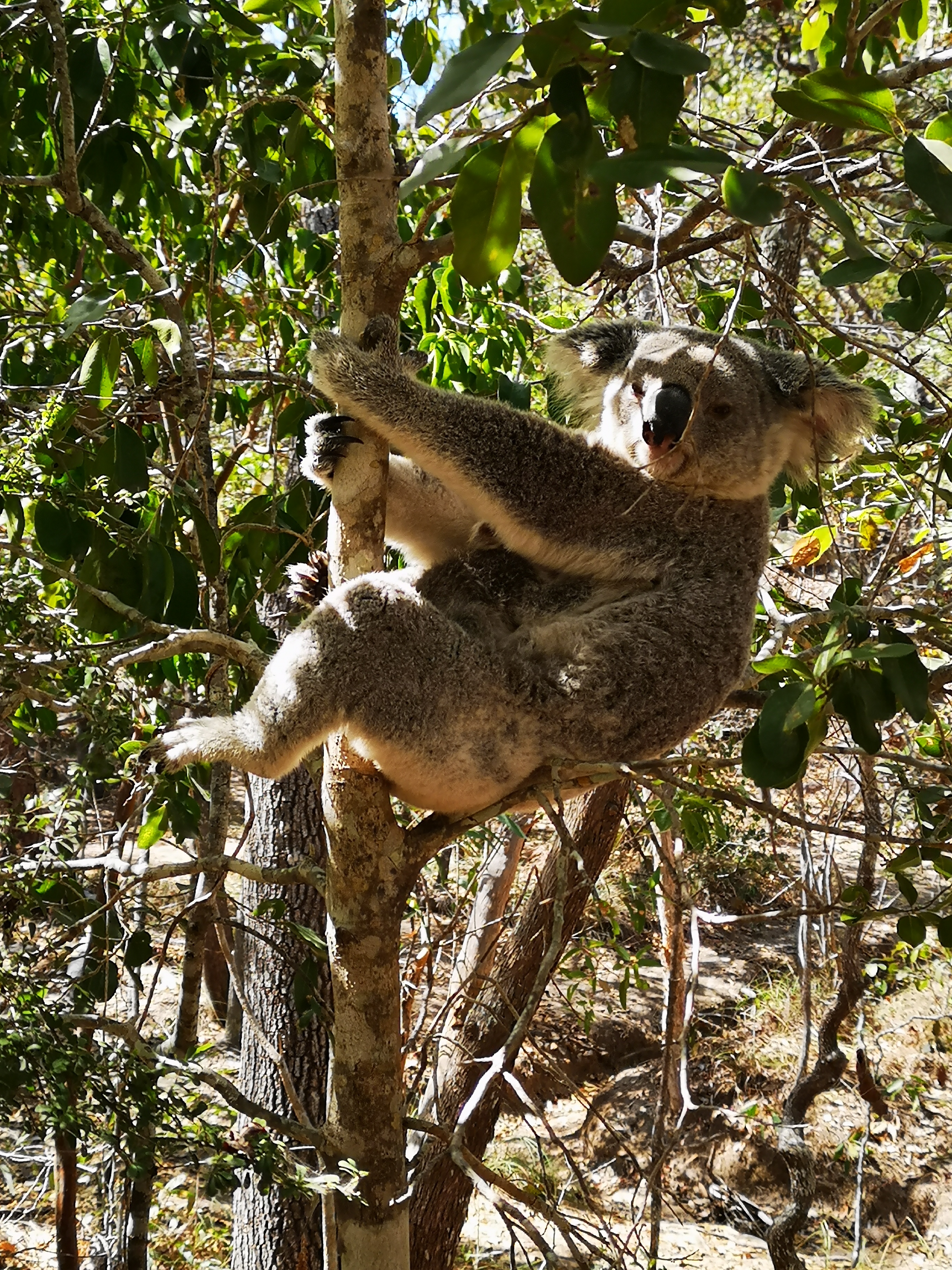Auf der Insel angekommen sollte die Fahrt direkt mit dem Bus weiter gehen, allerdings mussten Mama und Papa feststellen, dass man auch in Australien nicht alles mit der Kreditkarte bezahlen kann… Somit sind wir erst mit dem nächsten Bus eine Stunde später zu unserem ersten Ziel gefahren. Und das war der Startpunkt für den The Forts Walk. Neben den schönen, weiten Aussichten war das Highlight der Wanderung ein Koala mit Baby, den wir in einer Astgabel entdeckt haben.