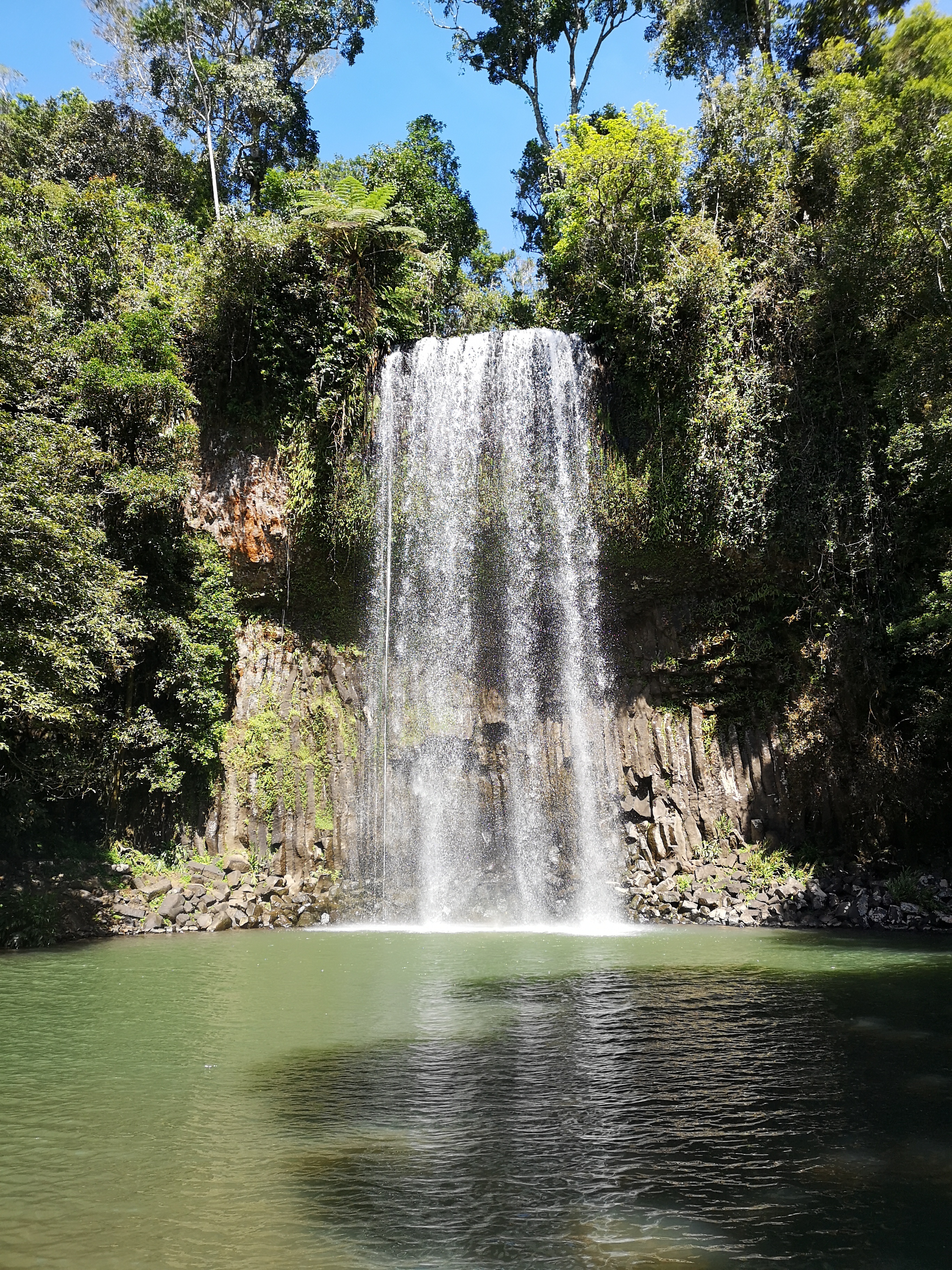 Nach dem Skywalk ging es weiter zum Waterfall Circuit, eine landschaftlich schöne Strecke, an der gleich drei Wasserfälle kurz hinter einander liegen. Die Ellinjaa Falls, die Zillie Falls und die Millaa Millaa Falls.