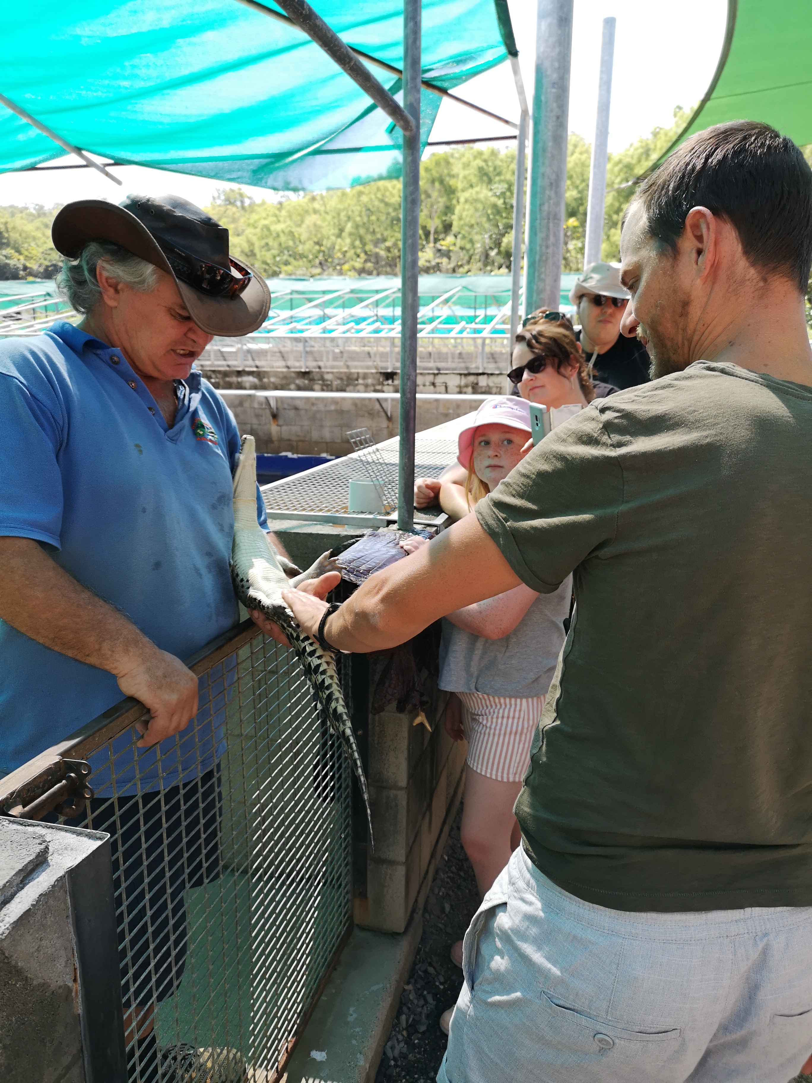 Nur wenige Minuten mit dem Auto entfernt liegt Hartley’s Crocodile Adventures. Eine Krokodilfarm mit angeschlossenen Zoo. Hier haben wir heute den Tag verbracht. Und viele Highlights erlebt: Bootstour über den Krokodil-River, Schlangen-Show, Mama durfte einen Koala halten, Papa hat ein Krokodil gestreichelt, Fütterung der Krokodile und vieles mehr…