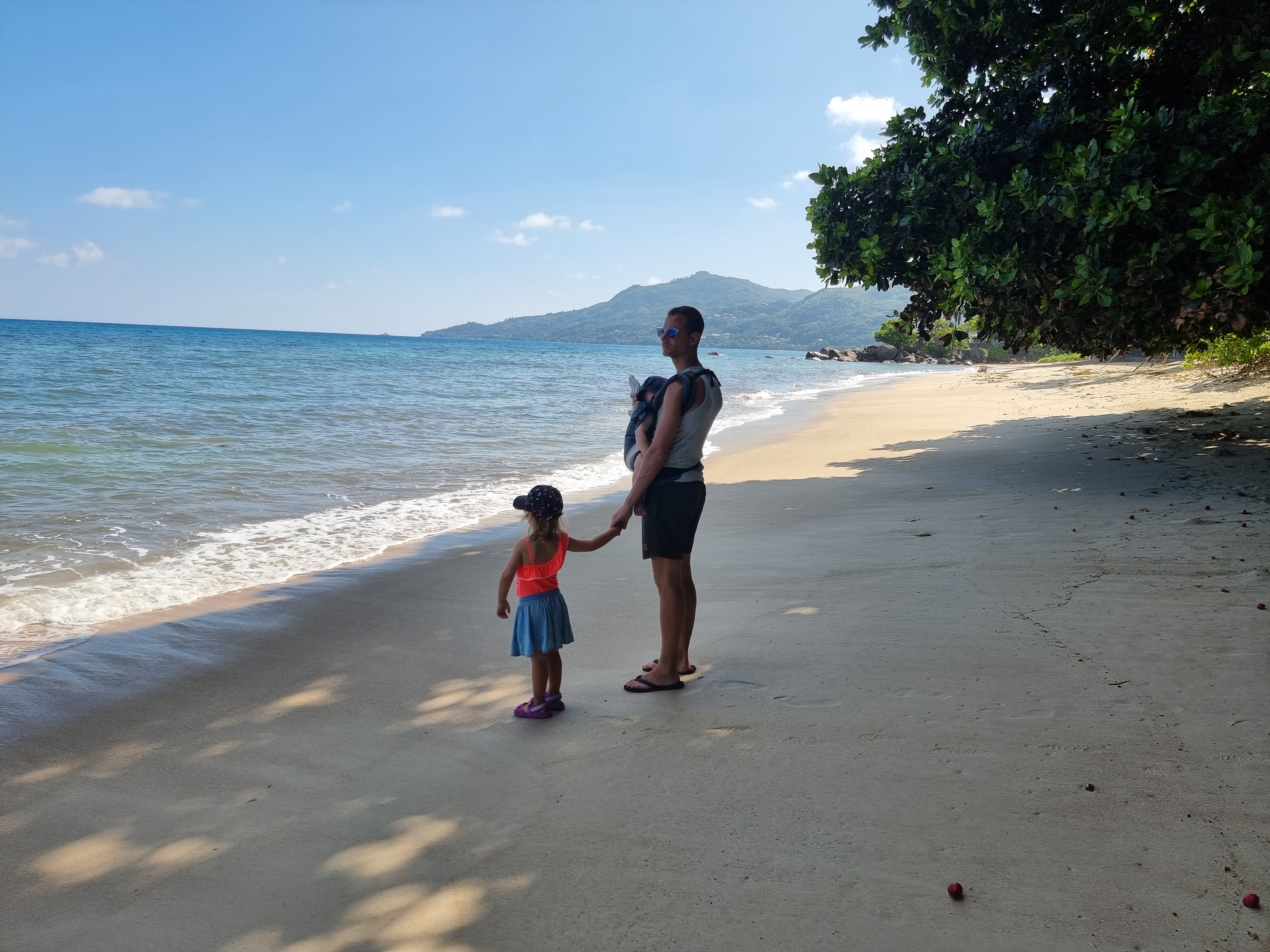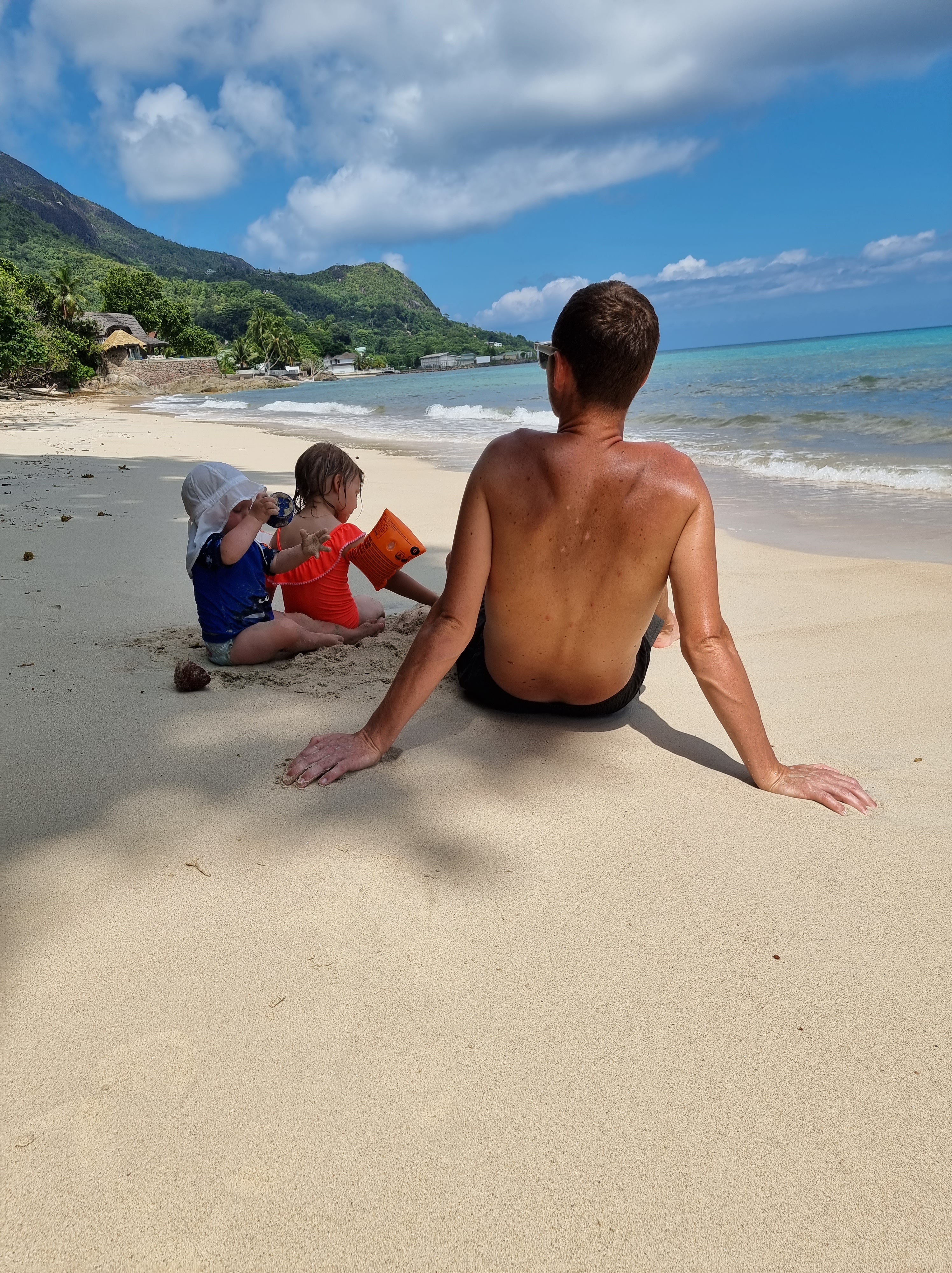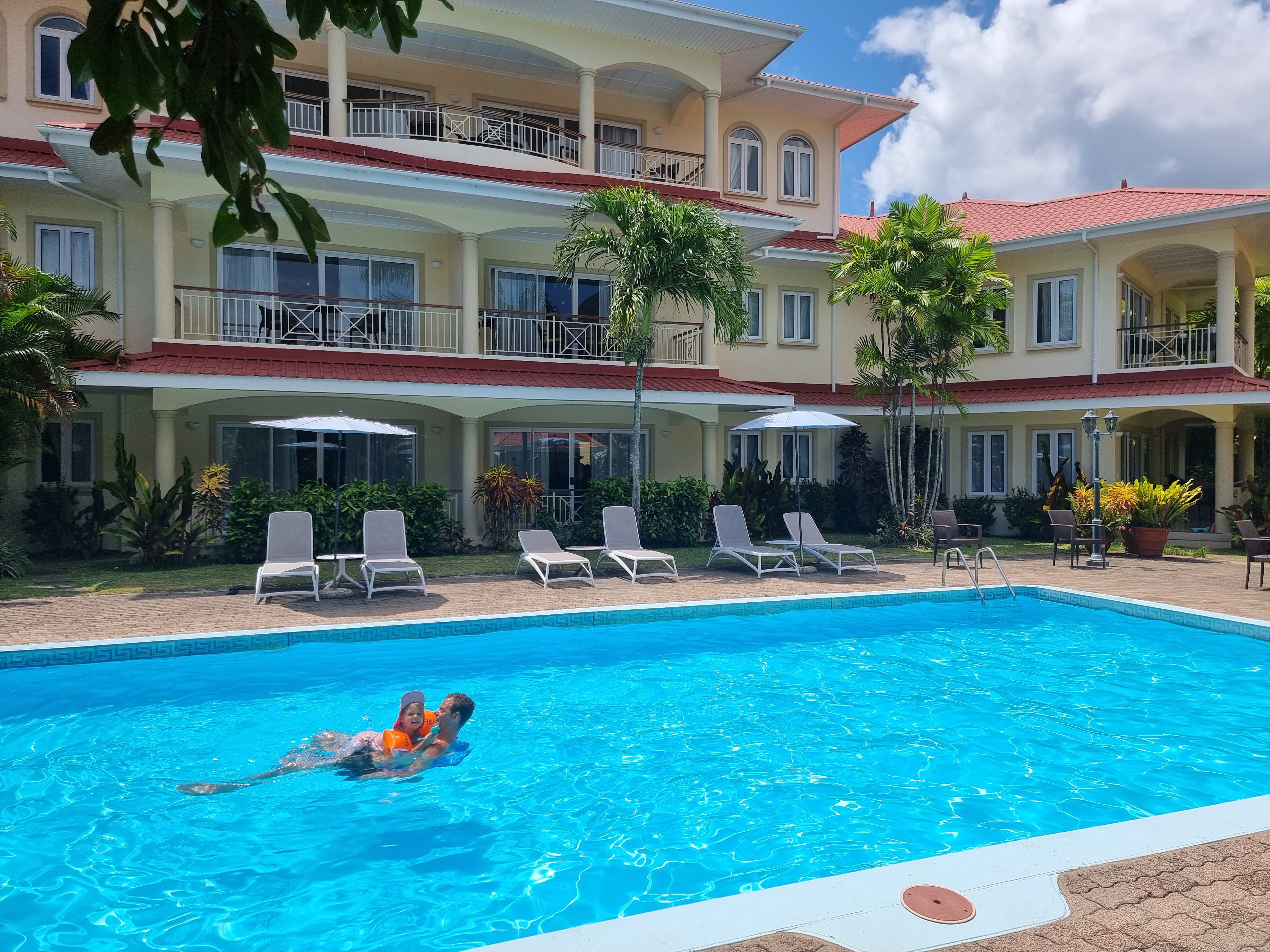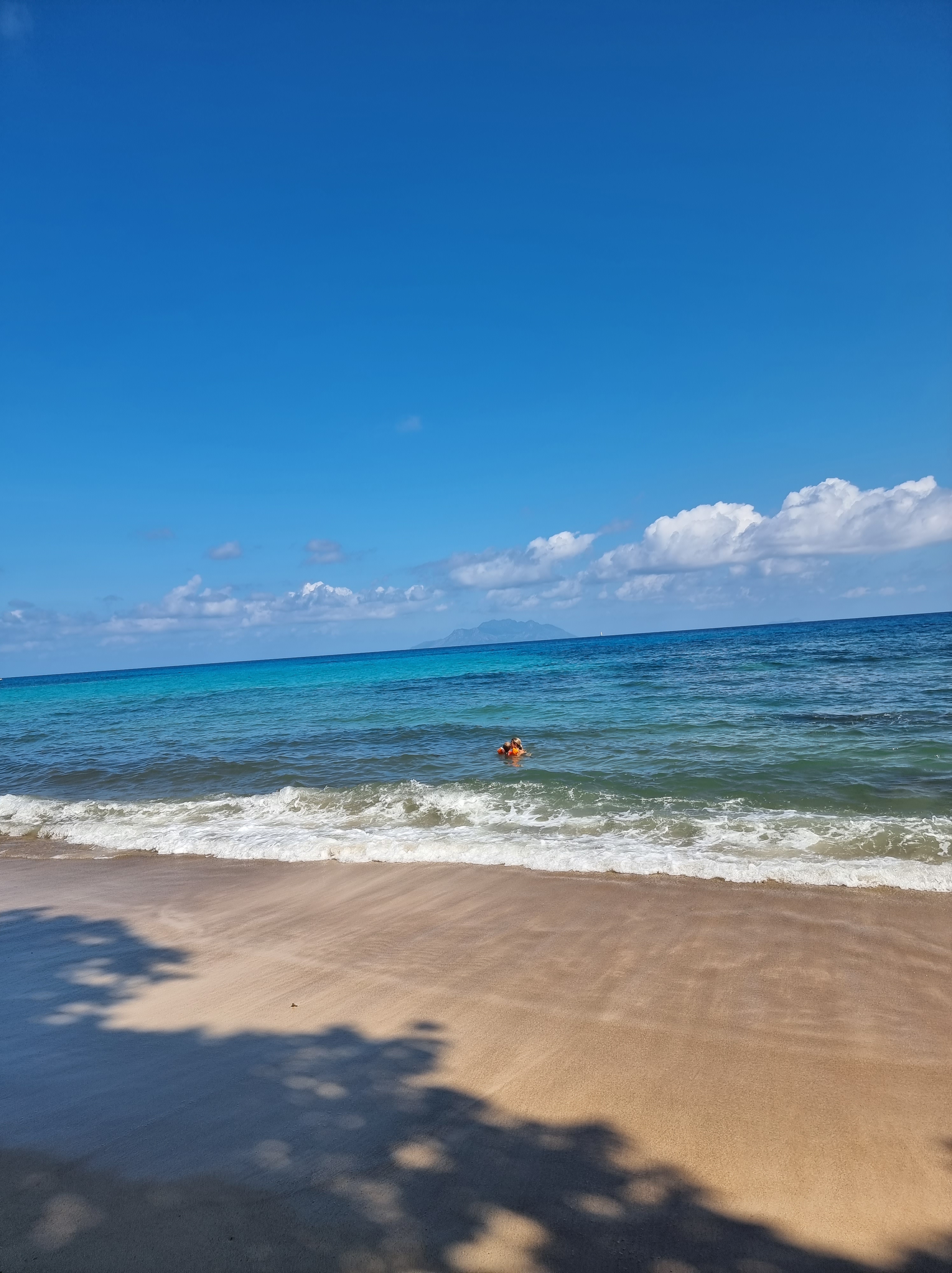 Heute konnte ich Mama und Papa überreden einen Pool-Tag zu machen, weil ich da so gerne rein gehe und mit meinen neuen Freunden spielen kann. Mama und Leonard haben heute morgen allerdings noch einen Spaziergang zum Strand Beau Vallon gemacht.