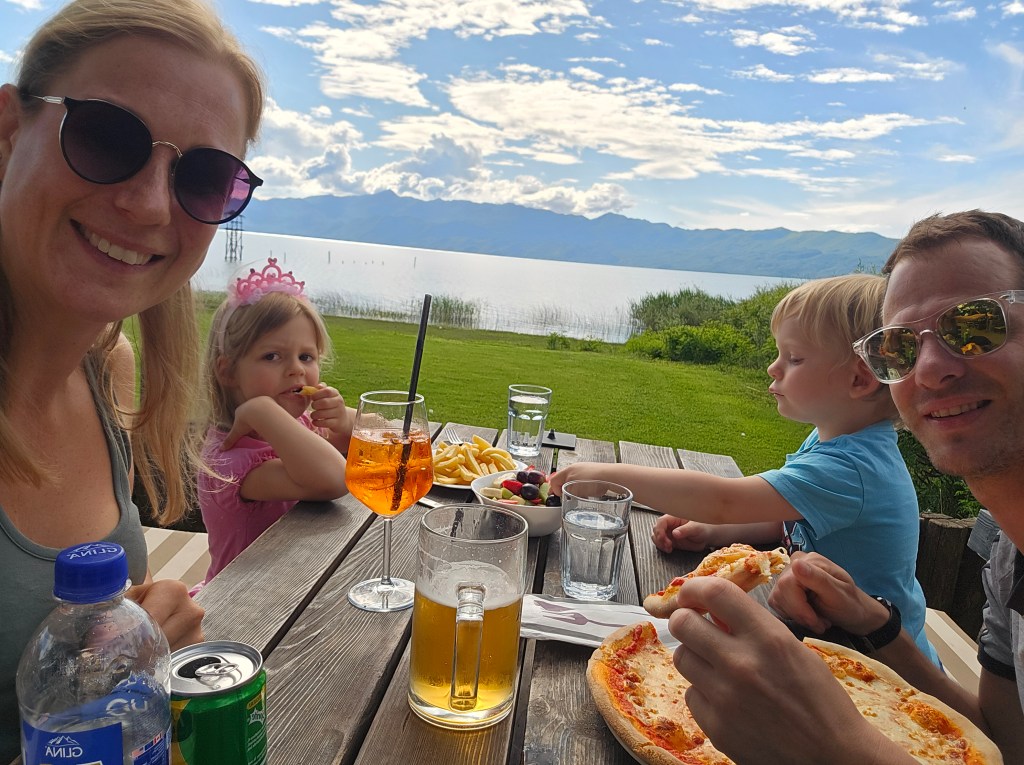 So sind wir nach einer kurzen Pause zurück zu unserem Urlaubshaus gefahren und haben unterwegs noch in einem gemütlichen Restaurant zu Mittag gegessen. Von hier aus hatten wir einen tollen Blick über den See.