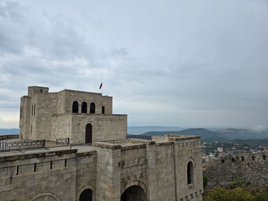 Insgesamt eine sehr lange Fahrt (4 Stunden), wir haben aber einen Zwischenstop gemacht und uns die Stadt Kruja angesehen. Eine kleine Stadt in den Bergen mit einer tollen Burganlage, einem Basar und einer leckeren Eisdiele.😊