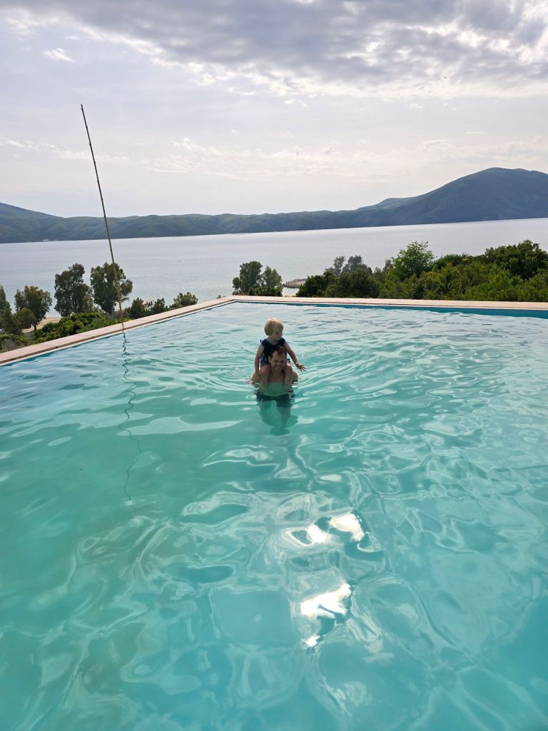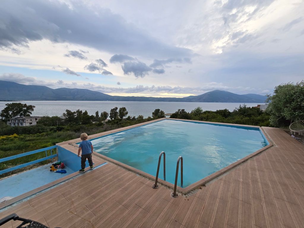 Dann sind wir endlich angekommen an unserem Urlaubshaus für die nächsten Tage… Eine kleine Wohnung mit einem richtig tollen Blick auf das Meer und die Berge und das Beste: mit einem richtig coolen Pool! 😊