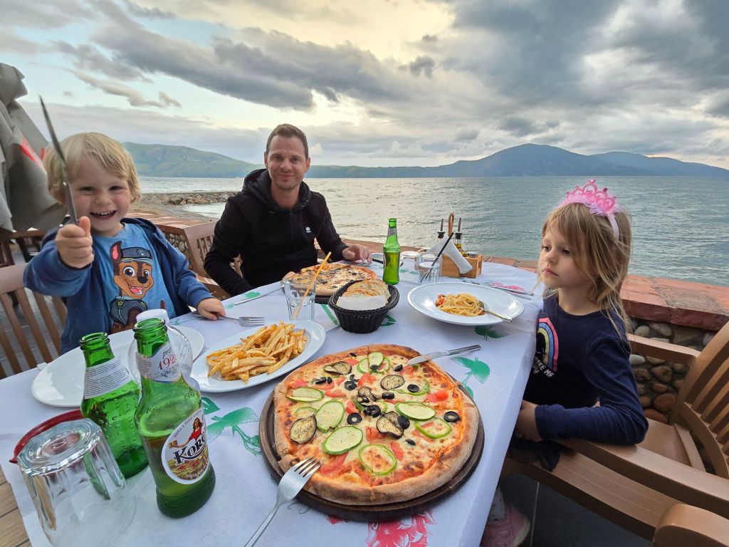 Auf dem Rückweg haben wir in Orikum angehalten und uns die Lagune und den Strand angesehen und haben sehr lecker zu Mittag gegessen, die beste Pizza in Albanien hat Papa gesagt. 😉