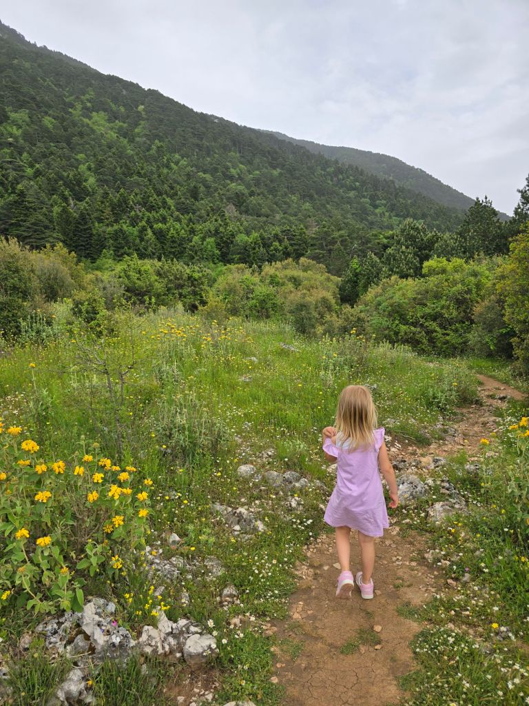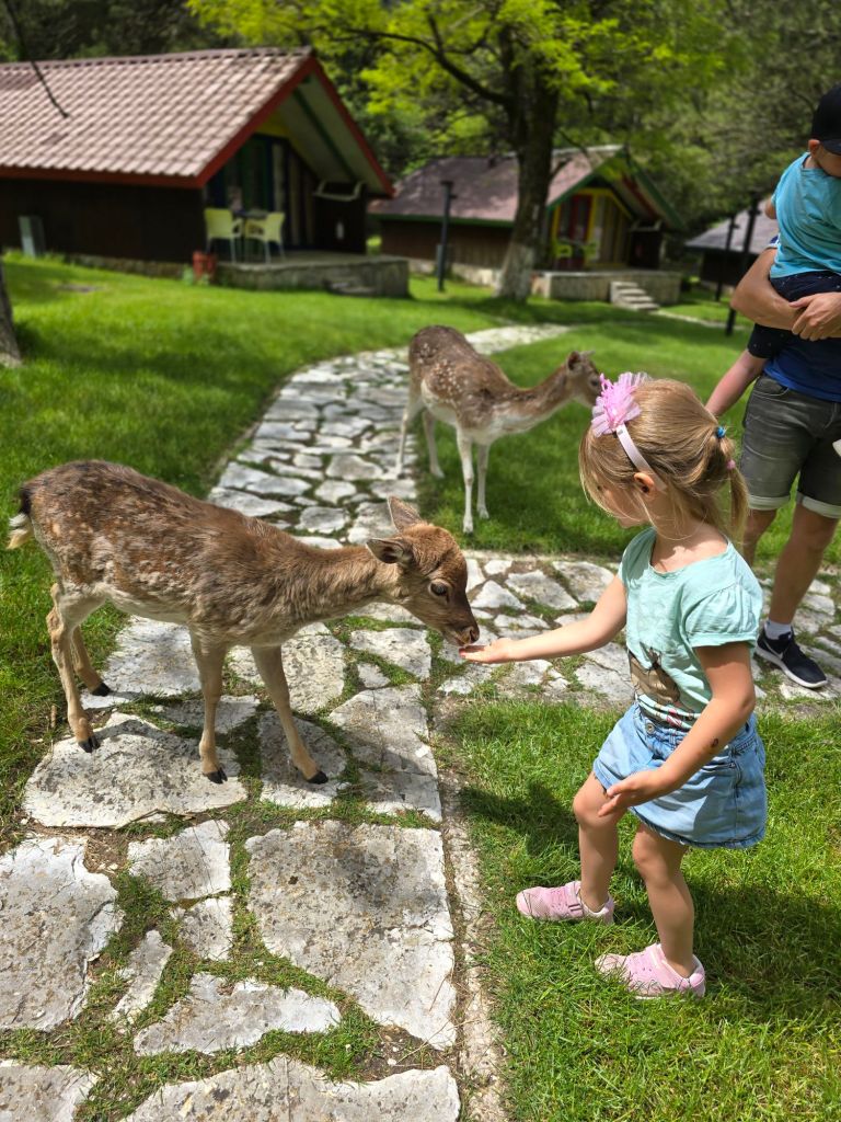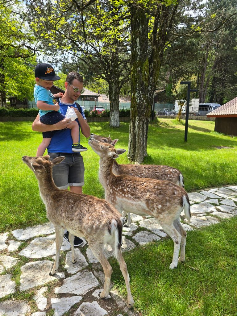 Wir sind auf der Pass-Straße Richtung Süden zum Llogara National Park gefahren. Dort haben ich mit Mama und Papa Rehe gefüttert, Leonard hatte Angst und wollte lieber auf Papas Arm bleiben.
