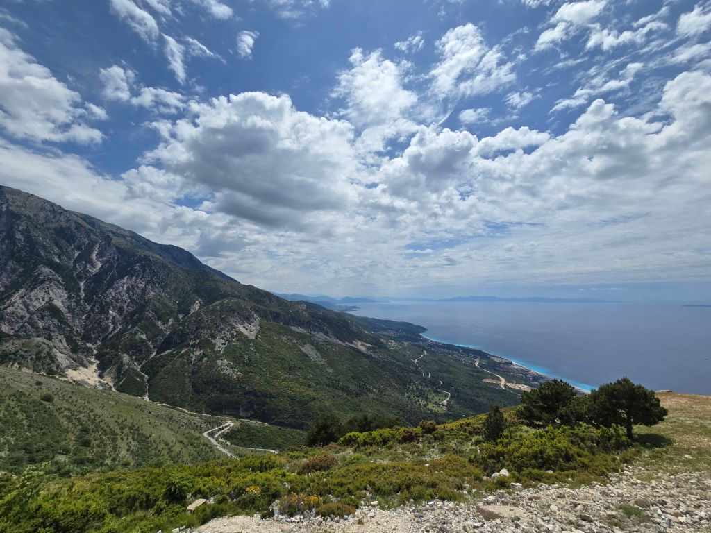 Wir sind danach noch weiter gefahren zu einem tollen Aussichtspunkt auf 1.200 Metern Höhe, von dem wir sogar bis nach Griechenland (Korfu) schauen konnten.