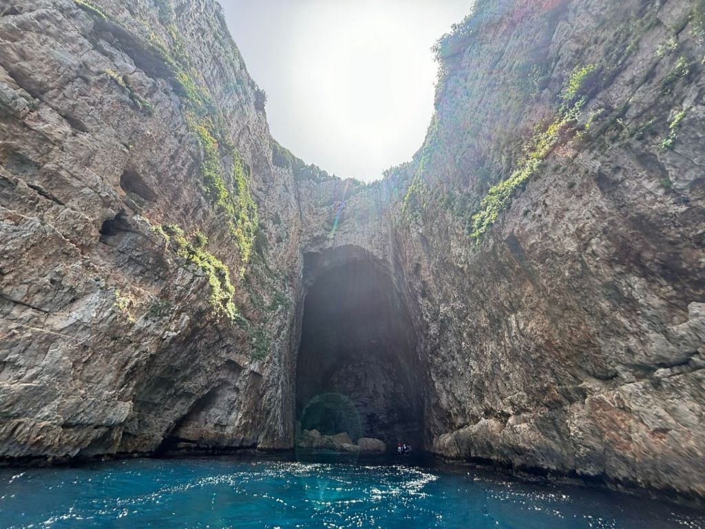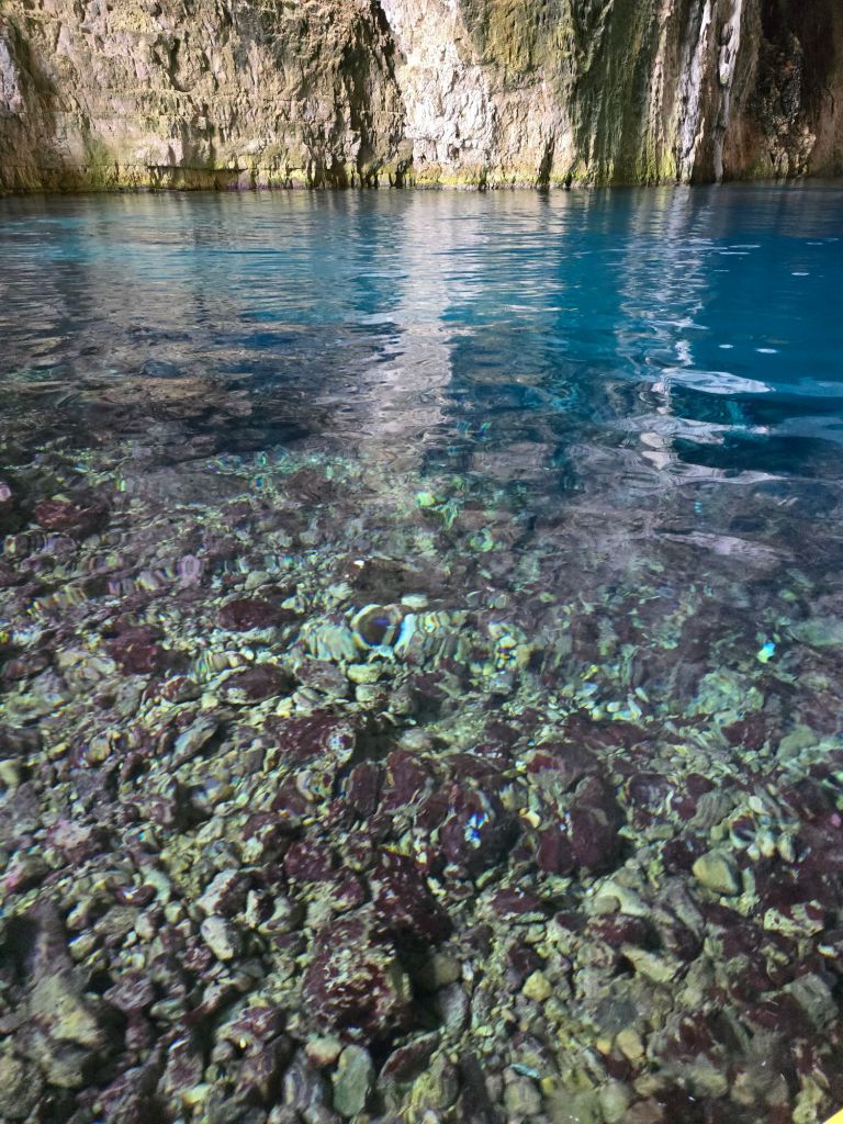 Der erste Stopp war die Höhle Shpella e Haxhi Aliut (Haxhi Ali Cave). Eine Höhle, die nach dem Krieger benannt wurde, der diese einst als Schutz vor den ausländischen Raubschiffen genutzt hat. Über ein riesiges Tor in den Felsen gelangt man hinein und das Wasser ist so klar, dass man bis auf den 14 Meter tiefen Grund schauen kann. Das Wasser hat eine konstante Temperatur von ca. 10-12 Grad, ganz schön kalt, aber trotzdem sind Mama, Papa und Paddy in der Höhle schwimmen gegangen.