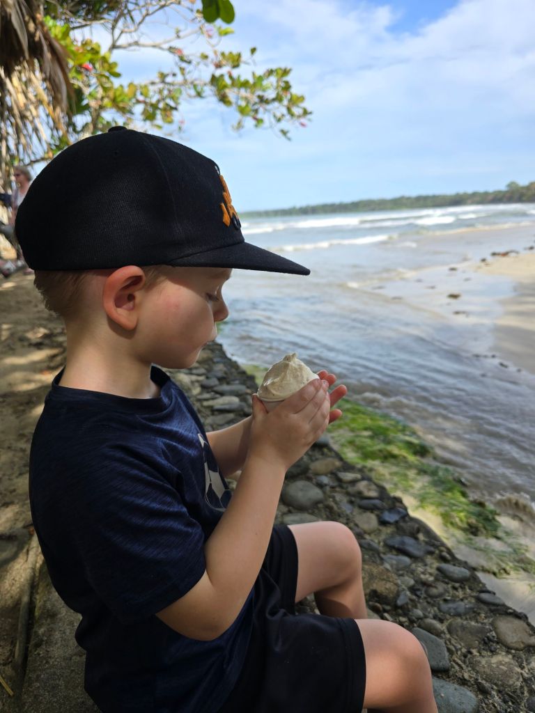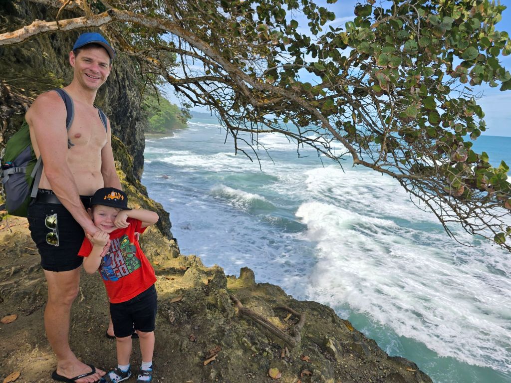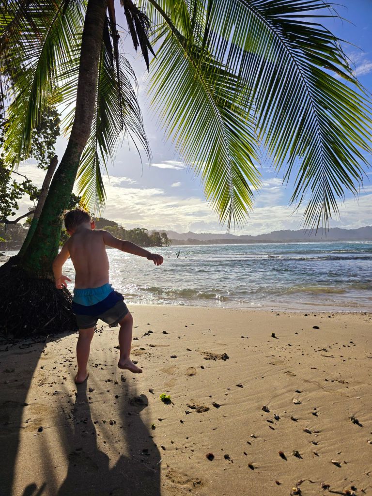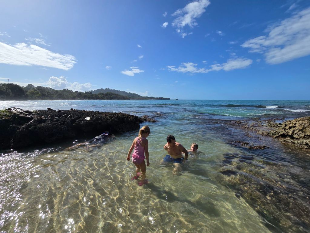 Auf dem Rückweg haben wir noch ganz in der Nähe von unserem Urlaubshaus an einem Strand angehalten, der uns von unserem Vermieter empfohlen wurde: Playa Cocles. Hier gibt es kleine „Natur-Pools“, in denen Leonard und ich im Wasser spielen konnten ohne Sorge vor den großen Wellen und der Unterströmung.