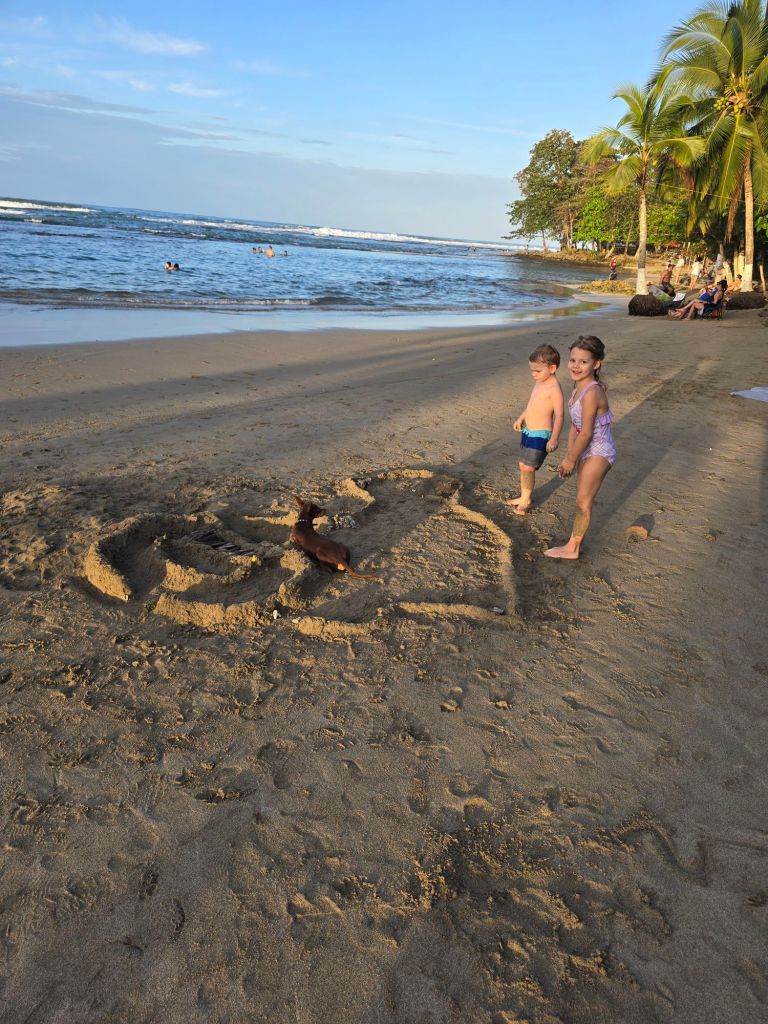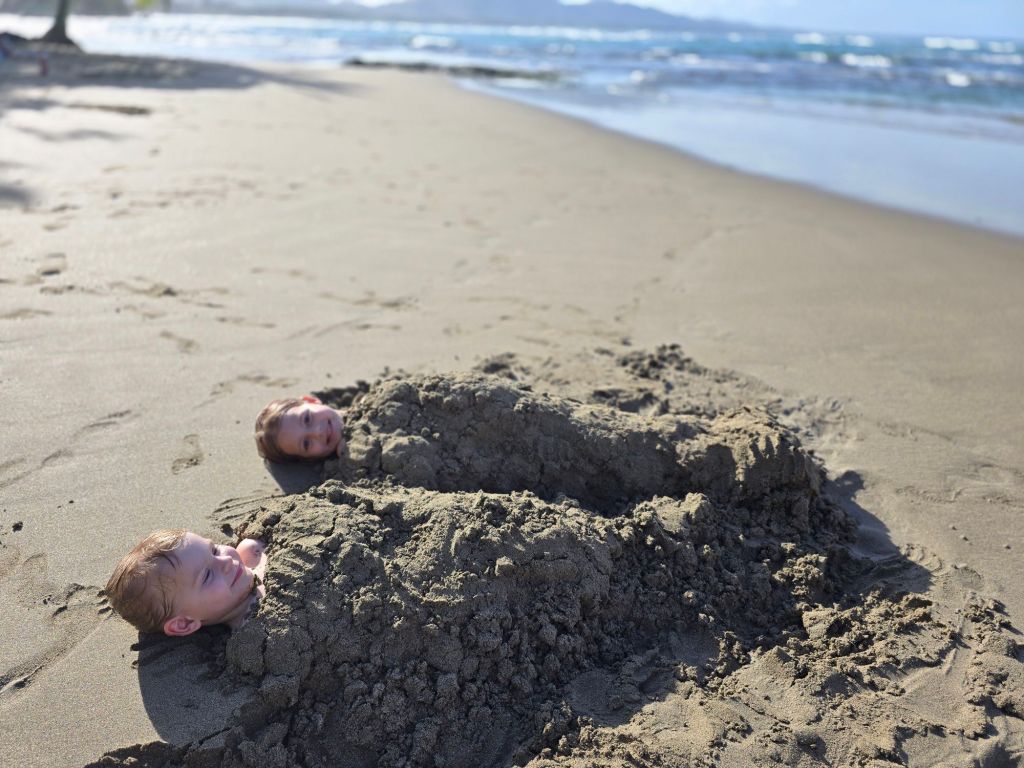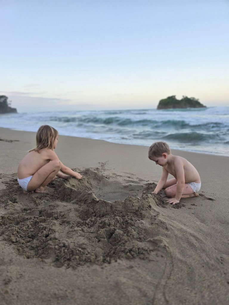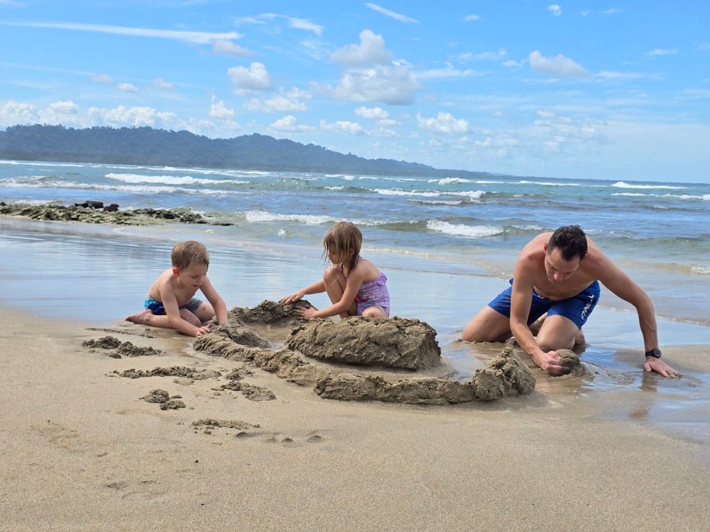 Auf dem Rückweg haben wir noch ganz in der Nähe von unserem Urlaubshaus an einem Strand angehalten, der uns von unserem Vermieter empfohlen wurde: Playa Cocles. Hier gibt es kleine „Natur-Pools“, in denen Leonard und ich im Wasser spielen konnten ohne Sorge vor den großen Wellen und der Unterströmung.