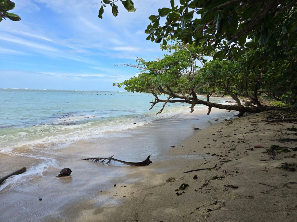 Heute wurden wir um sechs Uhr von den Vögeln und Brüllaffen im Garten geweckt. So konnten wir nach dem Frühstück schon früh los und sind weiter Richtung Süden gefahren, um uns einige der Karibikstrände anzusehen. In Punta Manzanillo haben wir einen längeren Halt gemacht und konnten auch etwas im Wasser spielen und uns abkühlen.