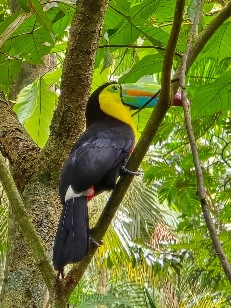 Nach einem leckeren Frühstück mit Toast und Rührei ging es heute morgen zum Jaguar Rescue Center, eine Tierauffang- und Rettungsstation. Hier werden verletzte, misshandelte, verwaiste oder beschlagnahmte Tiere behandelt, aufgepäppelt und wenn möglich wieder ausgewildert. Wir konnten an einer deutschen Führung teilnehmen, sodass Leonard und ich auch die Geschichten zu den Tieren verstehen konnte. Wir haben z.B. Affen, Faultiere, Papageien, Schlangen und einen Alligator gesehen. Und sogar einen Tukan haben wir in den Bäumen der Auffangstation entdeckt.