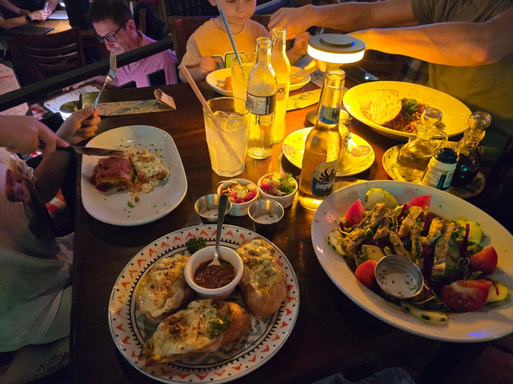 Nachdem wir kurz einkaufen waren, was hier etwas günstiger als an der Karibikküste war, ging es für uns zum Abendessen in ein Restaurant in der Nähe von unserem Urlaubshaus. Ich habe mein Lieblingsgericht, eine leckere Lasagne, gegessen.