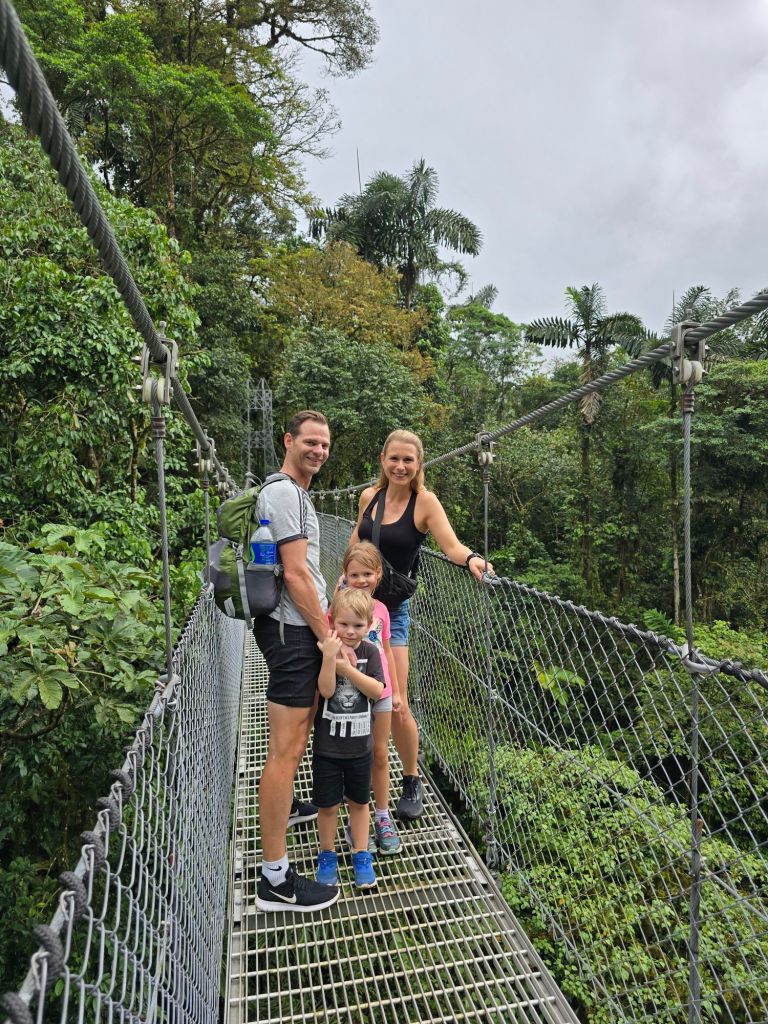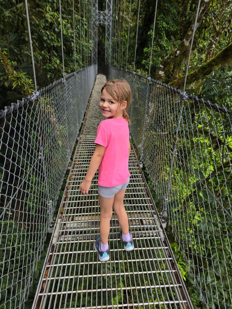 Auch in diesem Urlaubshaus können wir wieder draußen auf der Terrasse frühstücken. Danach haben wir uns, mit einem kurzen Zwischenstop bei der Wäscherei, auf den Weg zum heutigen Ziel gemacht, dem Mistico Hanging Bridges Park.