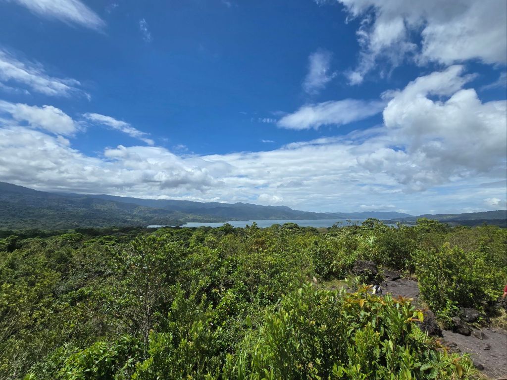 Nach dem Rundweg haben sich endlich die Wolken verzogen und wir hatten einen tollen Blick auf den Vulkan Arenal. Die Chancen hierfür stehen bei nur 30 %, dass man den Vulkan klar sehen kann. Der Arenal ist der aktivste und jüngste Vulkan in Costa Rica und einer der aktivsten Vulkane der Welt. Am Fuß des Vulkans liegt der größte Binnensee des Landes, der Arenal-See.